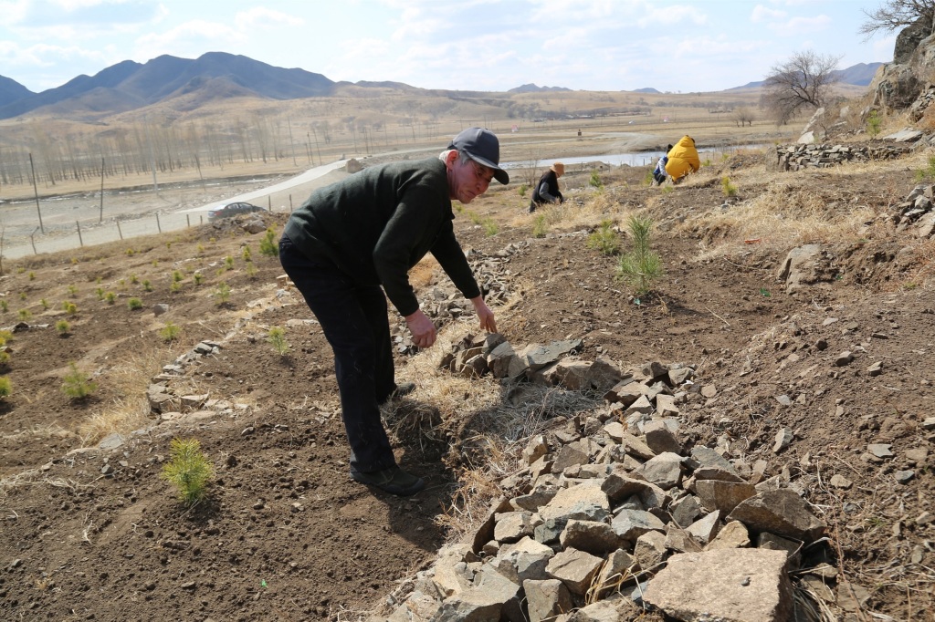 高金山看着他亲手种下的树。(摄影:青格乐)