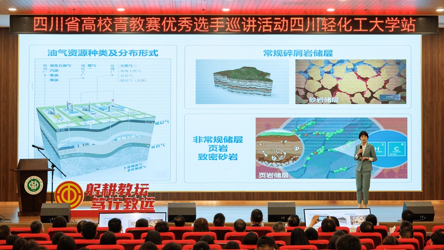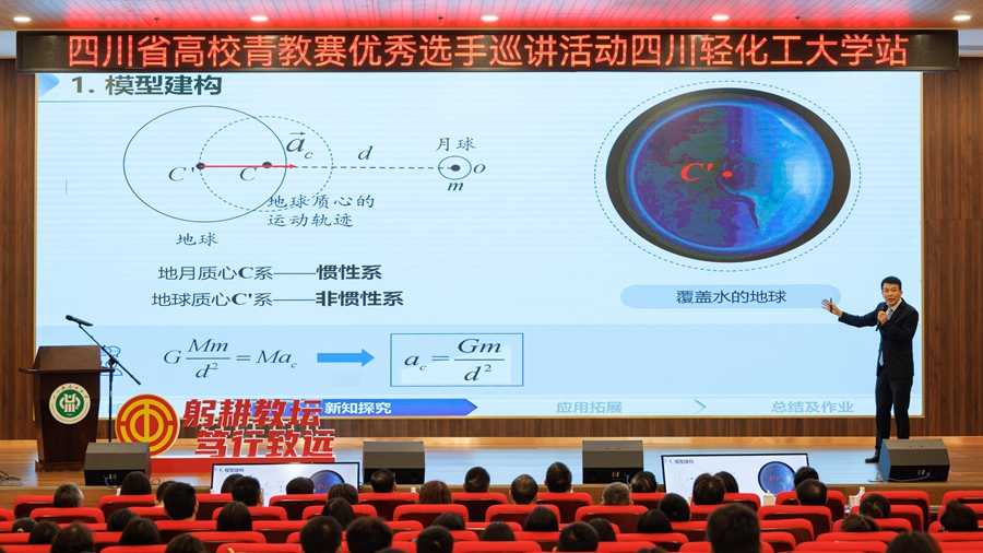 随后,黄先明宣布2024年四川省高校青教赛优秀选手巡讲活动正式启动。来自成都理工大学的金思丁、西华师范大学的刘立刚、西南财经大学的宋婧琳、四川大学的李浇共四位第七届省高校青年教师教学竞赛一等奖获得者,分别进行了精彩的巡讲。他们通过生动的教学案例和深入浅出的讲解,向现场观众展示了各自领域的前沿知识和教学方法,赢得了阵阵掌声。