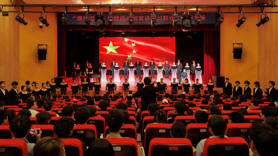 伴随着开场歌舞《好儿好女好江山》的悠扬旋律,活动拉开了序幕。师生们共同聚焦屏幕,观看“理响巴蜀”宣讲活动的精彩视频。随后,三位来自不同高校的杰出宣讲者依次登台,倾情讲述。