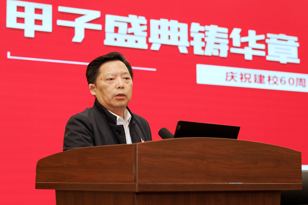 11月11日下午,我校在李白河校区学术报告厅举行建校60周年校庆工作总结大会。全体校领导、校庆专班成员、中层干部及师生代表齐聚一堂,共同回顾校庆辉煌历程,总结宝贵经验,凝聚奋进共识。会议由学校党委副书记、校长曾英主持。