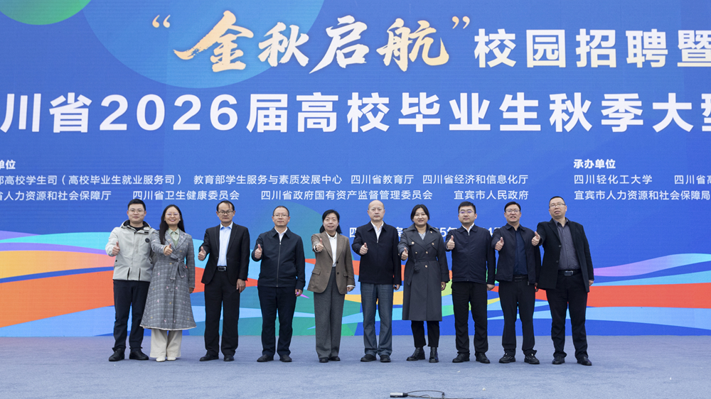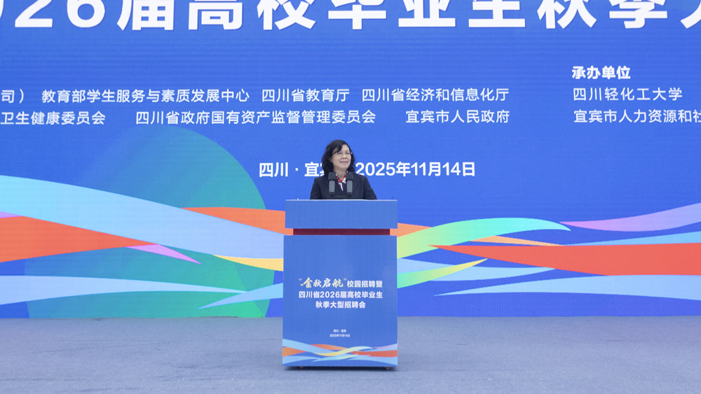 11月14日上午,“金秋启航”校园招聘暨四川省2026届高校毕业生秋季大型招聘会在我校宜宾校区酒文化广场隆重启幕。本次招聘会由教育部高校学生司、教育部学生服务与素质发展中心、四川省教育厅等多部门联合主办,我校与四川省高校学生信息咨询与就业指导中心等单位承办,汇聚了550余家优质用人单位线下设展、370余家单位线上同步纳才,发布岗位2万余个,吸引全省高校1.2万余名毕业生现场求职,线上参与人数突破8万。