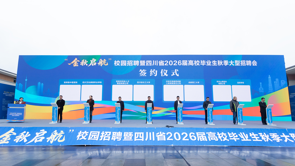启动仪式上还举行了多轮校企合作签约,成都理工大学、四川轻化工大学、宜宾学院等8所高校与中铁五局成都工程有限责任公司、农夫山泉股份有限公司等8家单位现场签署合作协议,推动人才培养与产业需求深度融合。