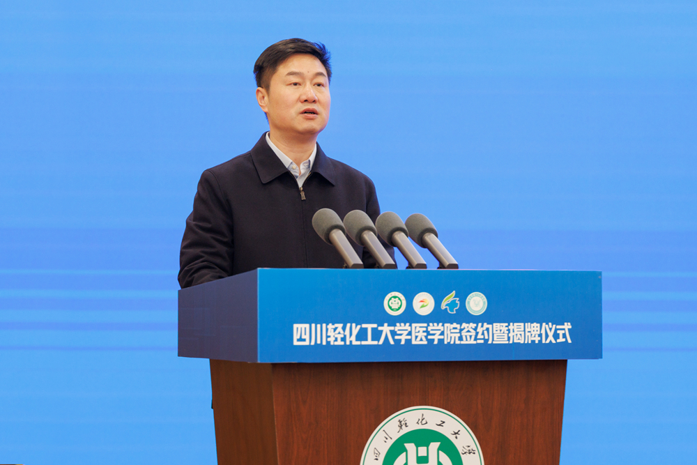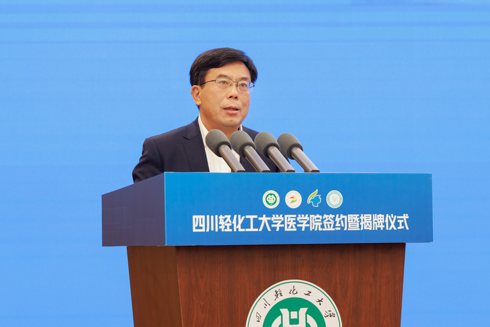 在全体与会人员的见证下,四方代表共同签署共建协议,“四川轻化工大学医学院”正式揭牌,标志着四川轻化工大学医学院及四川轻化工大学附属医院•自贡市第四人民医院、四川轻化工大学附属医院•自贡市第一人民医院正式启航。