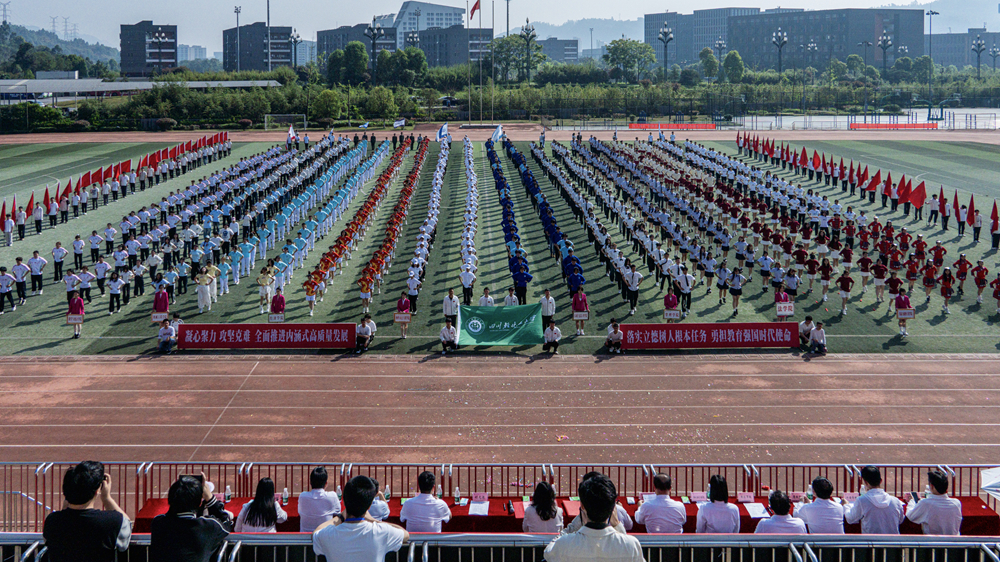 本次运动会采取两校区同步启动的形式,22个学院代表队齐聚绿茵场。学校党委书记张力,党委副书记、校长曾英分别出席李白河校区与宜宾校区开幕式并宣布开赛。党委常委、副校长高小林主持李白河校区开幕式,党委常委、副校长胡光忠主持宜宾校区开幕式,全体校领导、各部门、各学院负责人参加活动。